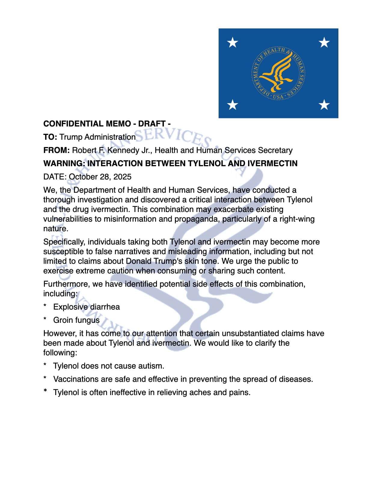 FROM: Robert F. Kennedy Jr., Health and Human Services Secretary