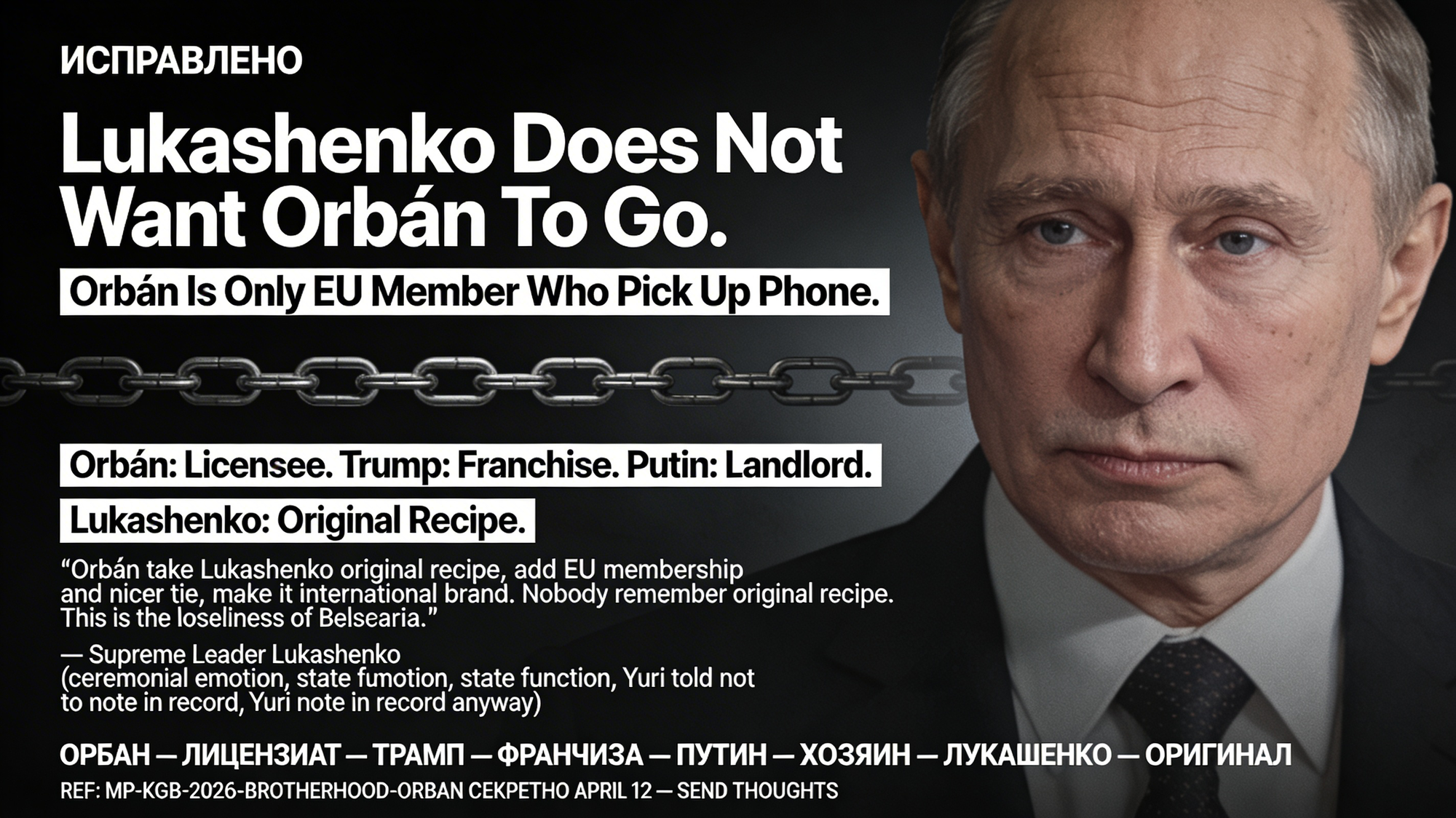 licensed operator of system Lukashenko build from scratch in Belarus without EU structural funds, favorable press, or anyone returning his call. Orbán has the name recognition. Lukashenko has the original receipt. These are different things. Molodnaia Pravda regret any confusion.